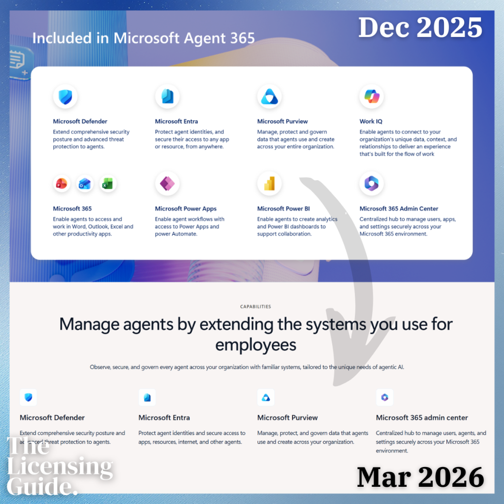 None of that will arrive with Agent 365 in its GA version. As one example, compare the “included capabilities” section on the Agent 365 website in December with how it looks now: