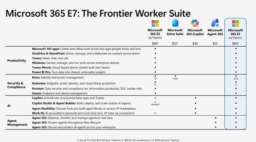 Since Microsoft 365 E7 is the Frontier Worker Suite, and it is priced per user, the Agent 365 offering to launch alongside it had to also follow the same model as other products in the bundle.